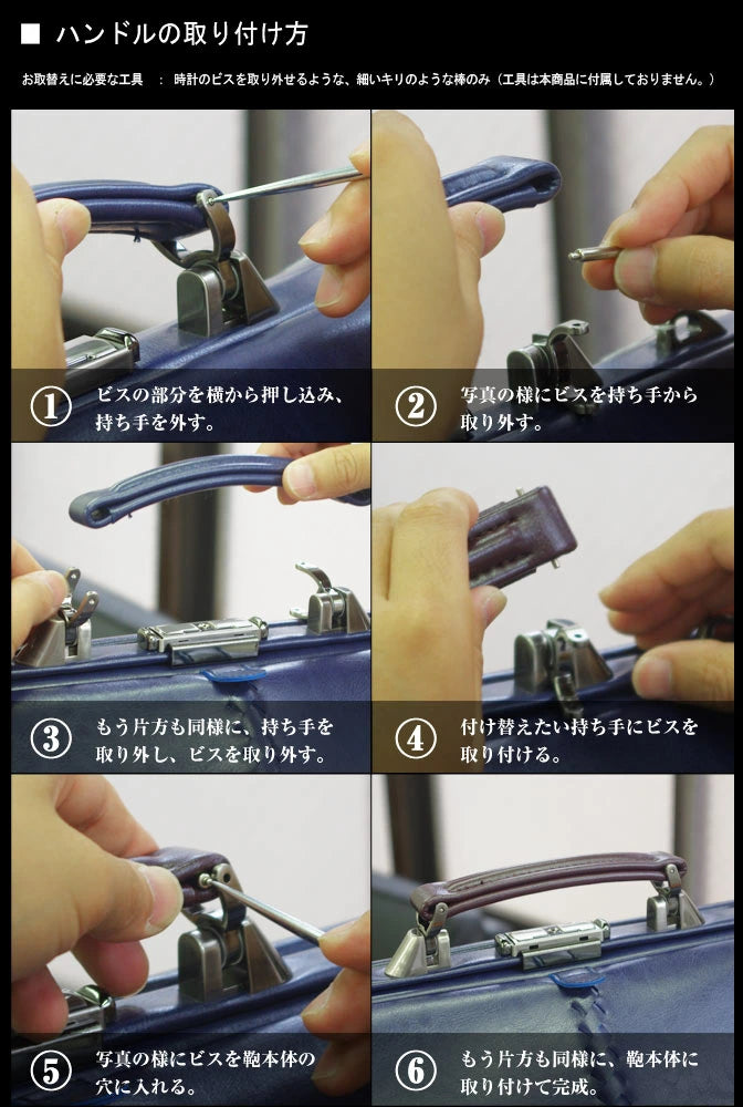 ハンドルは基本バッグに取り付けて発送をします。予備または交換用として、