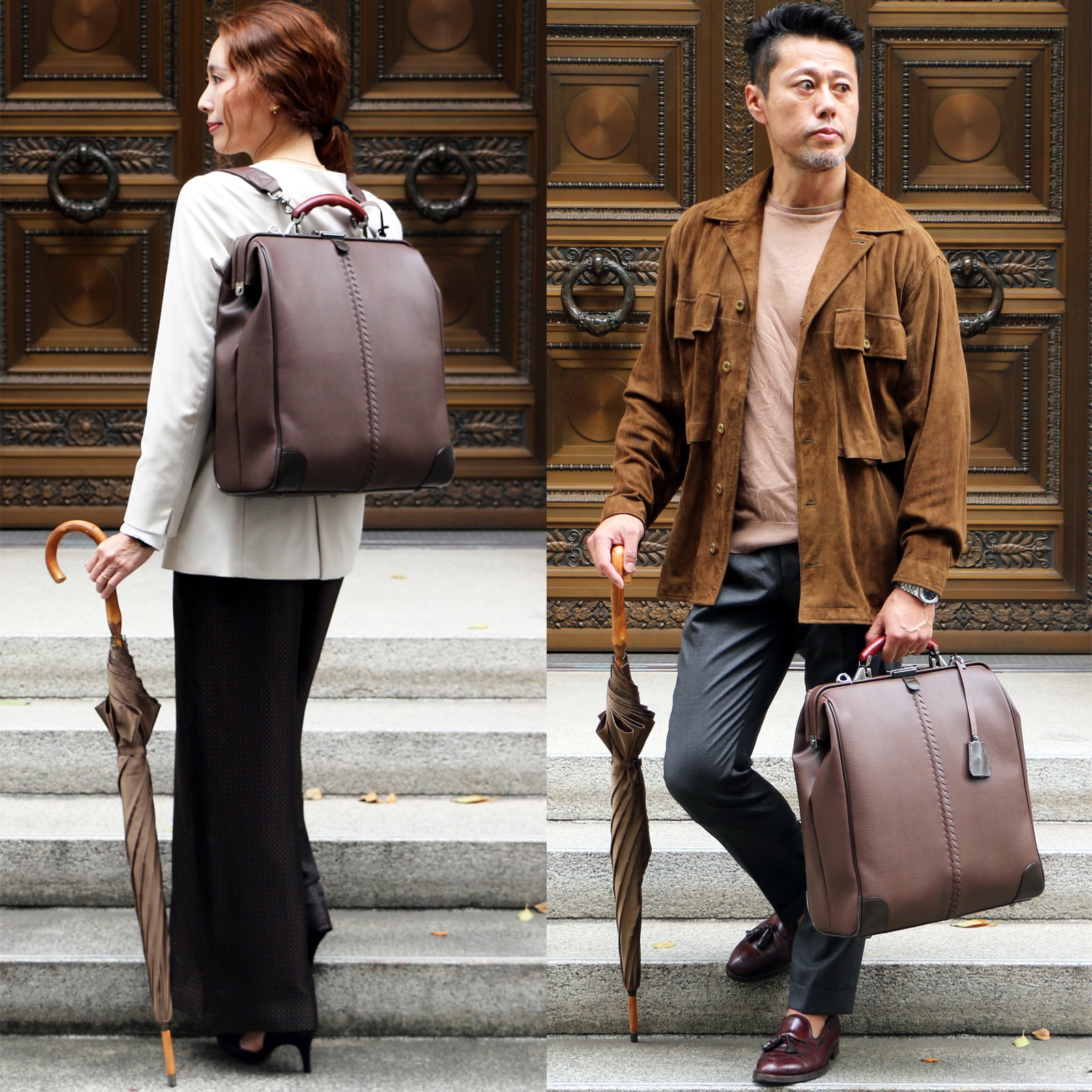 兵庫県の鞄職人による高品質な縫製と、実用性・デザイン性を兼ね備えた豊岡鞄認定モデル。大きく開くフレーム構造と3WAY仕様で、ビジネスにも旅行にも最適な縦型ダレスバッグです。
